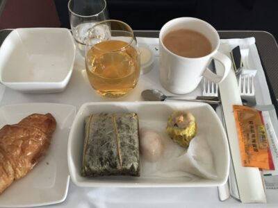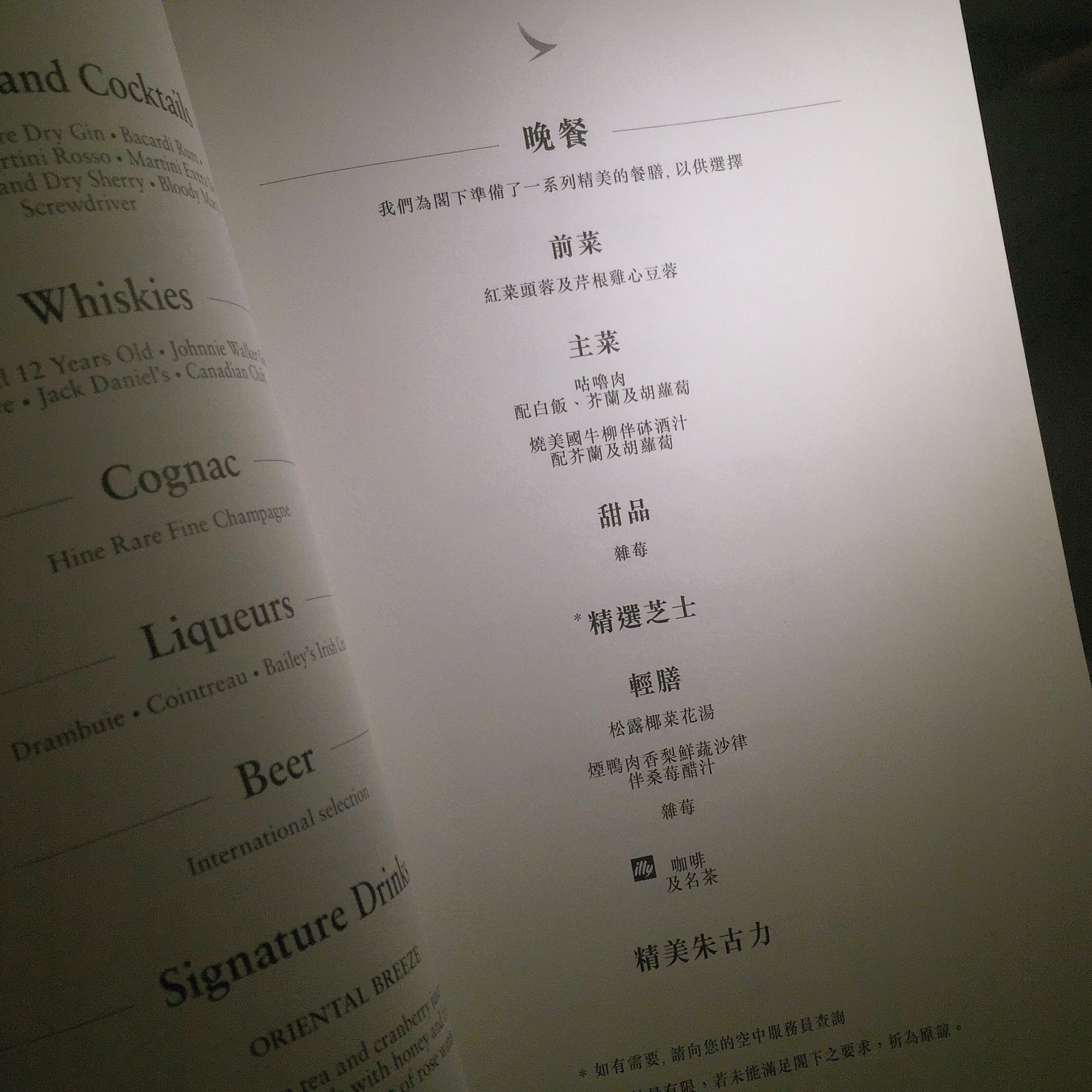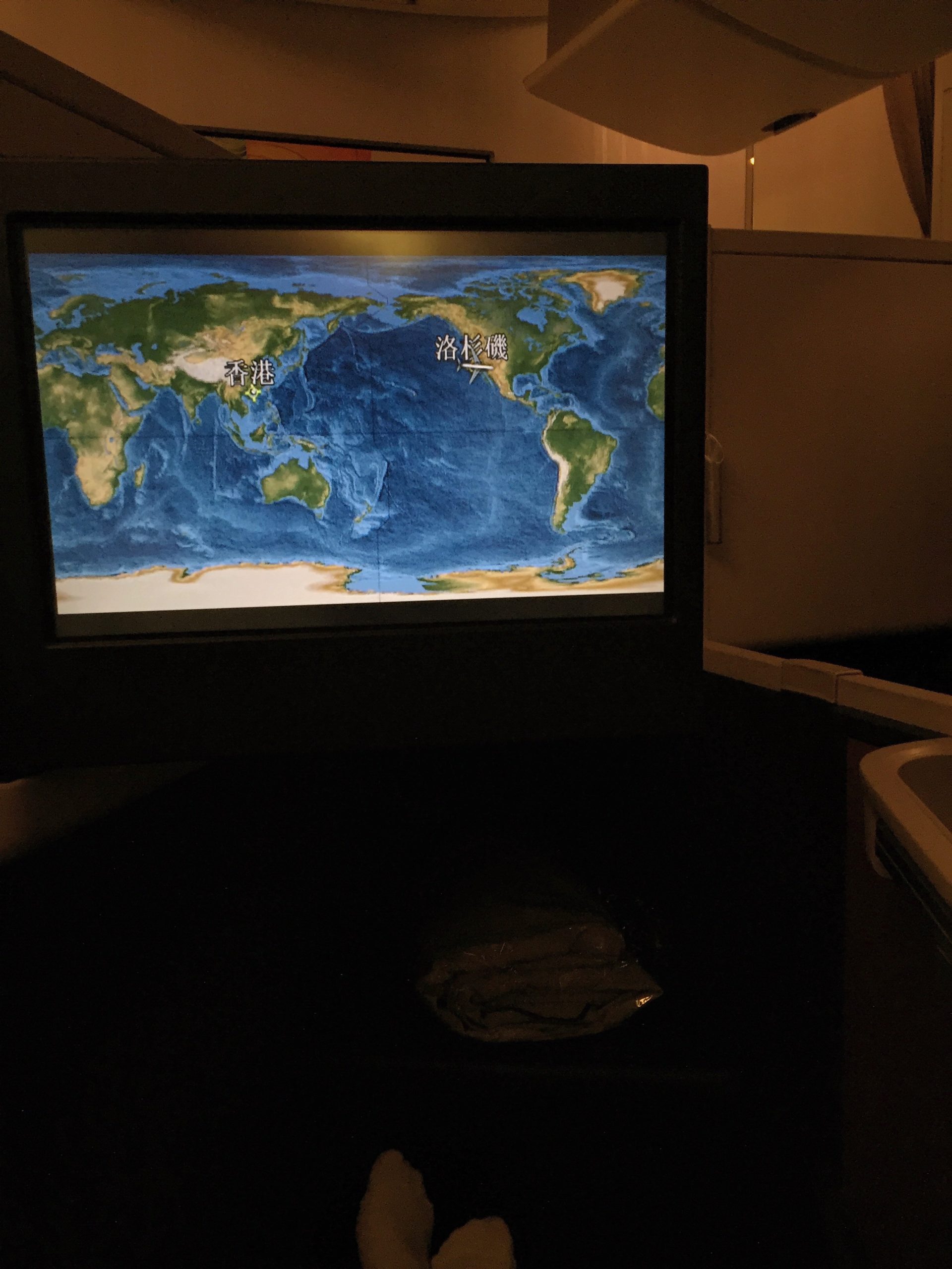 在洛杉磯搭上了國泰航空,當機艙送上熱騰騰的亞洲食物,