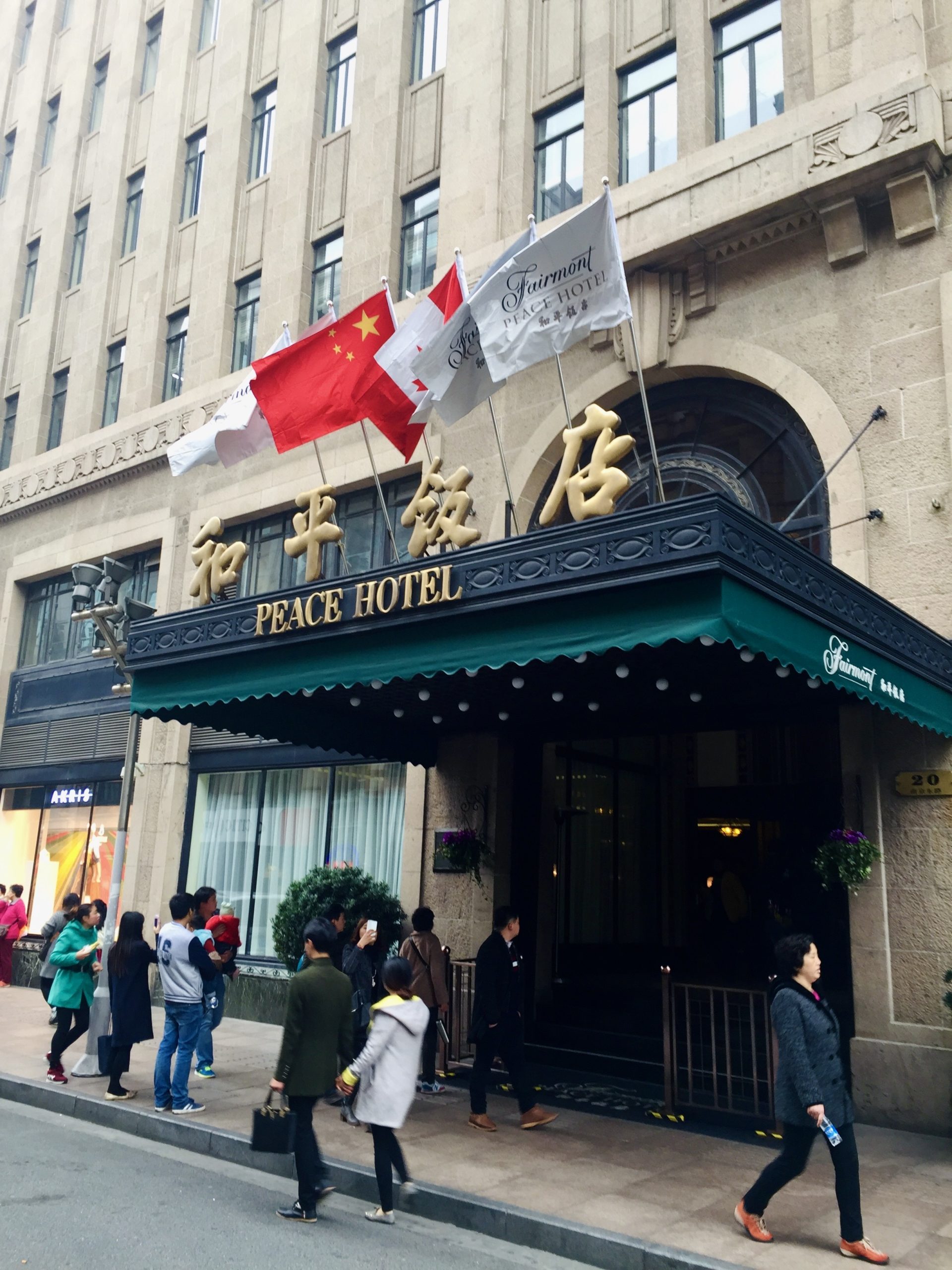 綠色的遮棚下,金色「和平飯店」四個字穩穩地掛在門上方,有種歷史的重量。