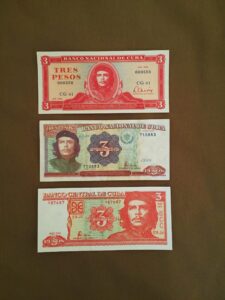 各國的鈔票總是印上最具代表性的人物,在古巴,3 CUP 上一直都是 Che Guevara,而紙幣每十年會改版一次。