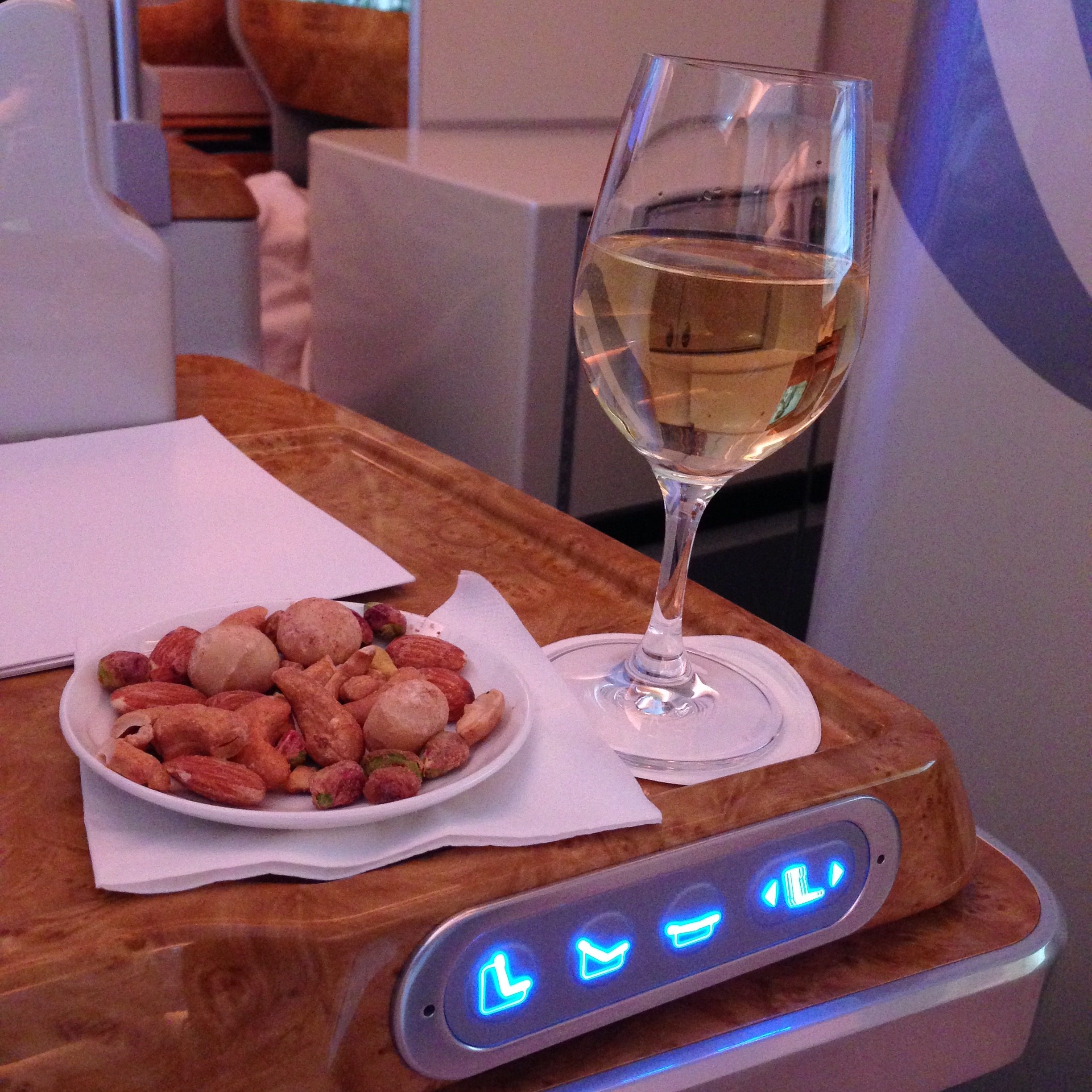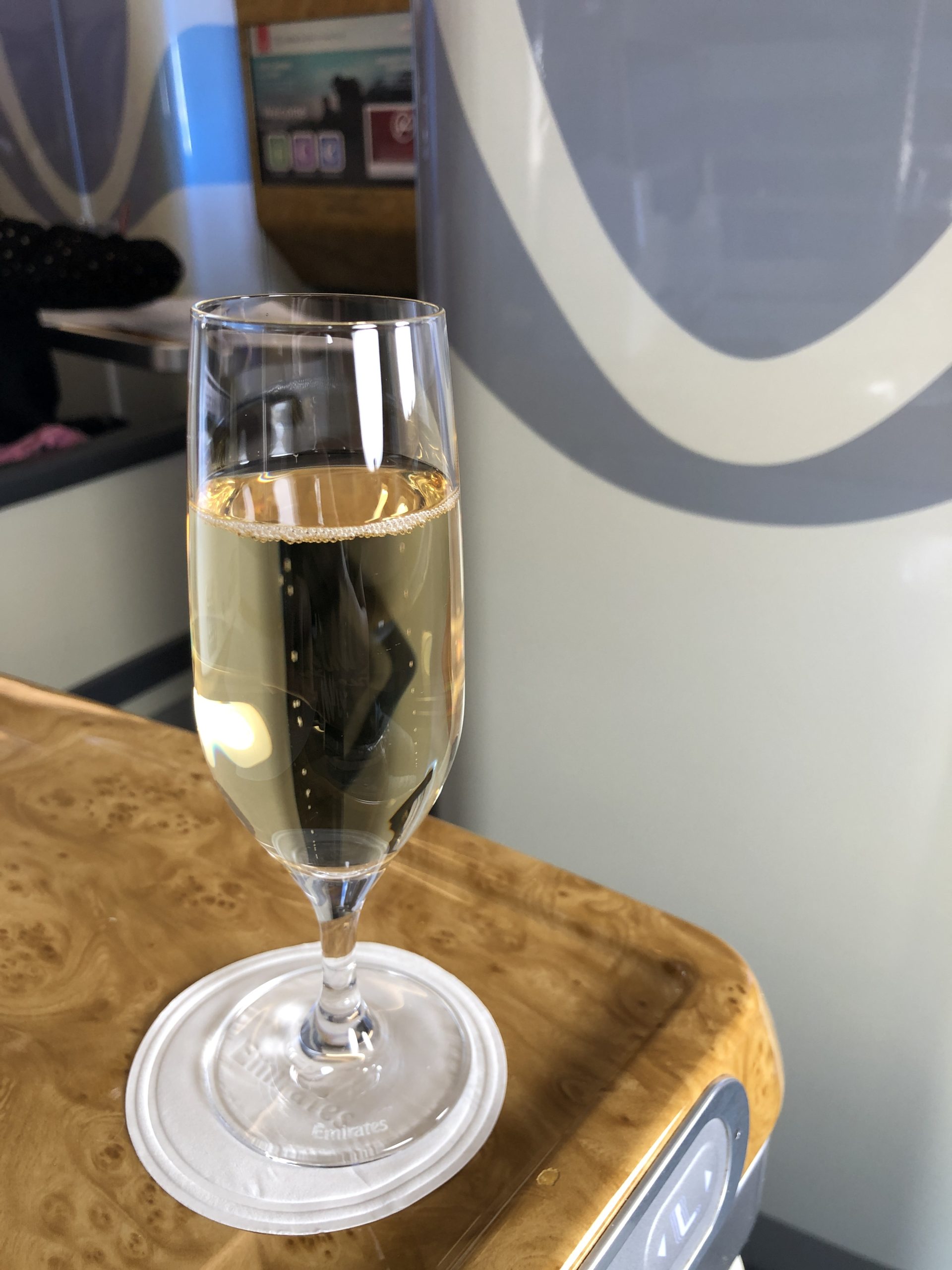 那種新鮮感,現在回想起來,機艙的畫面我還記得很清楚。Emirates 的 A380 商務艙,在當時算是走得很前面。