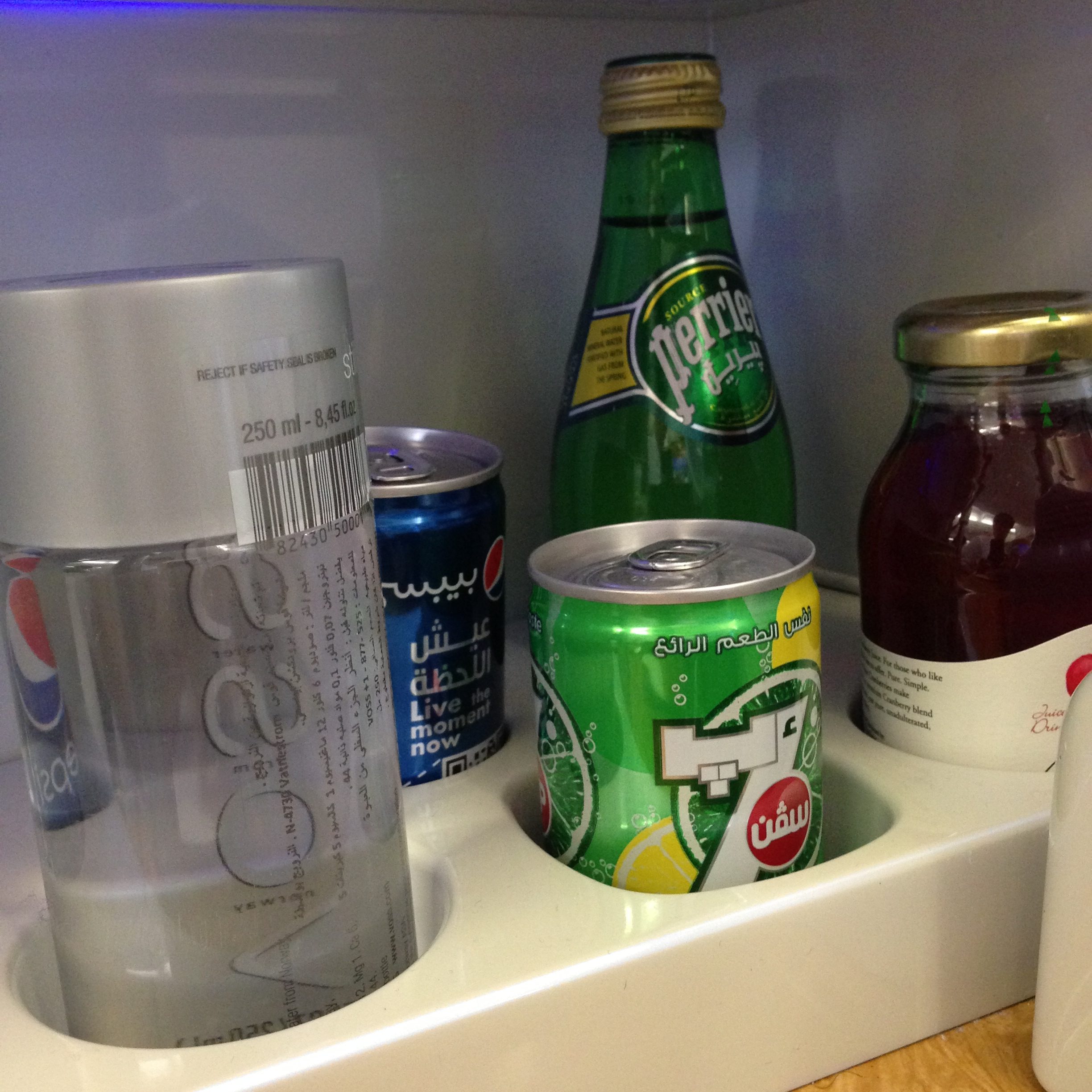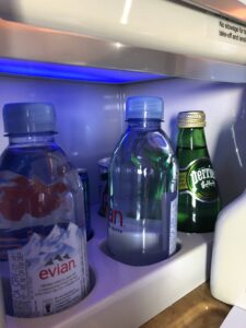 座位旁邊還有自己的 mini bar,小瓶裝的水與果汁、汽水應有盡有。