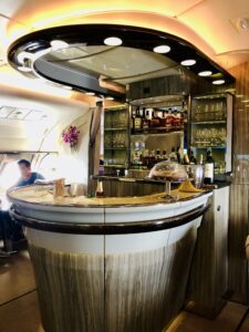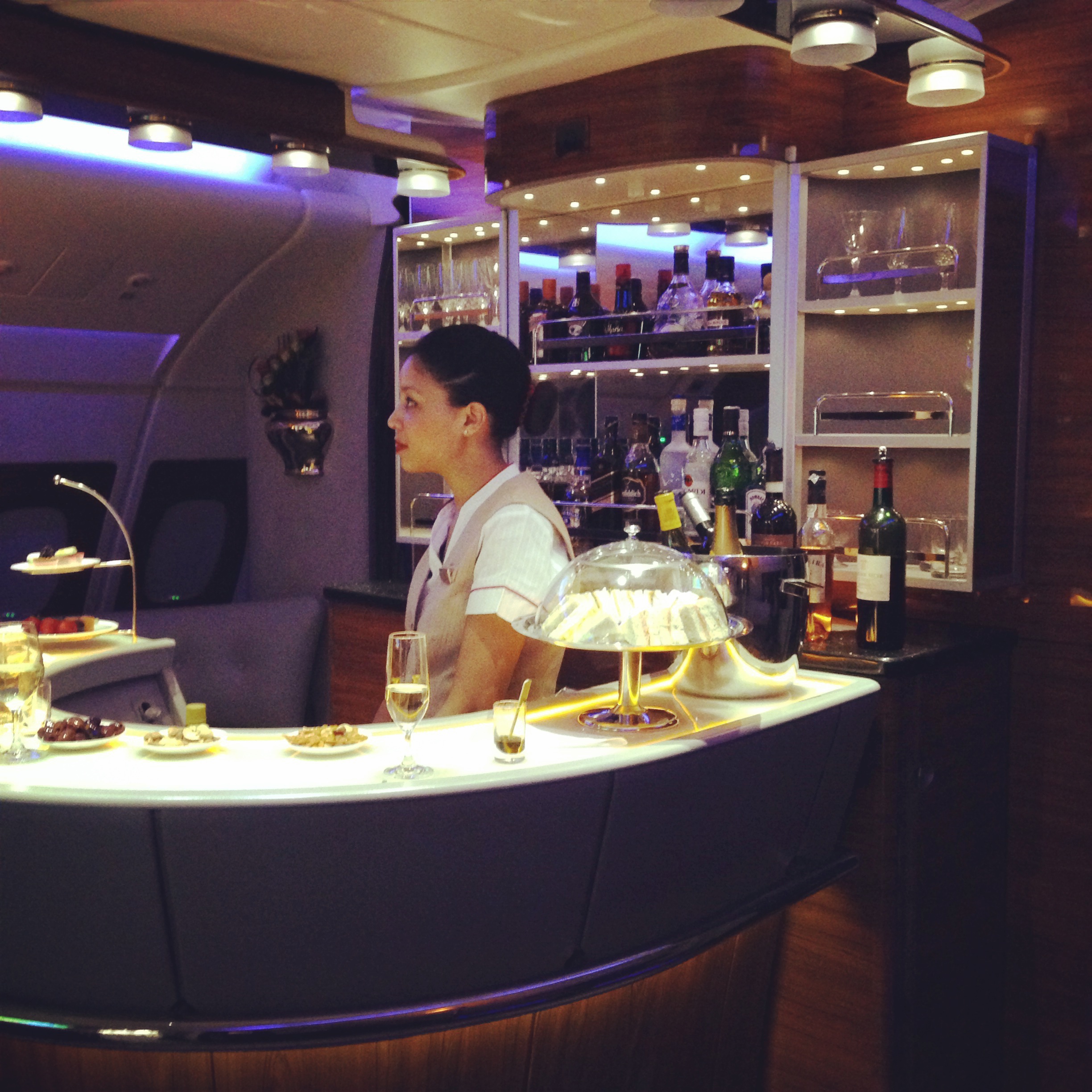 那是我第一次搭上有空中酒吧的航班,走進去的瞬間,就像誤入另一個世界。