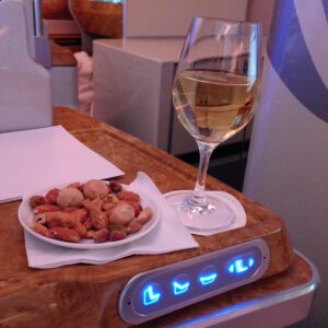 椅距、酒單、座位旁的 mini bar 依然優秀,娛樂系統一樣很強大。