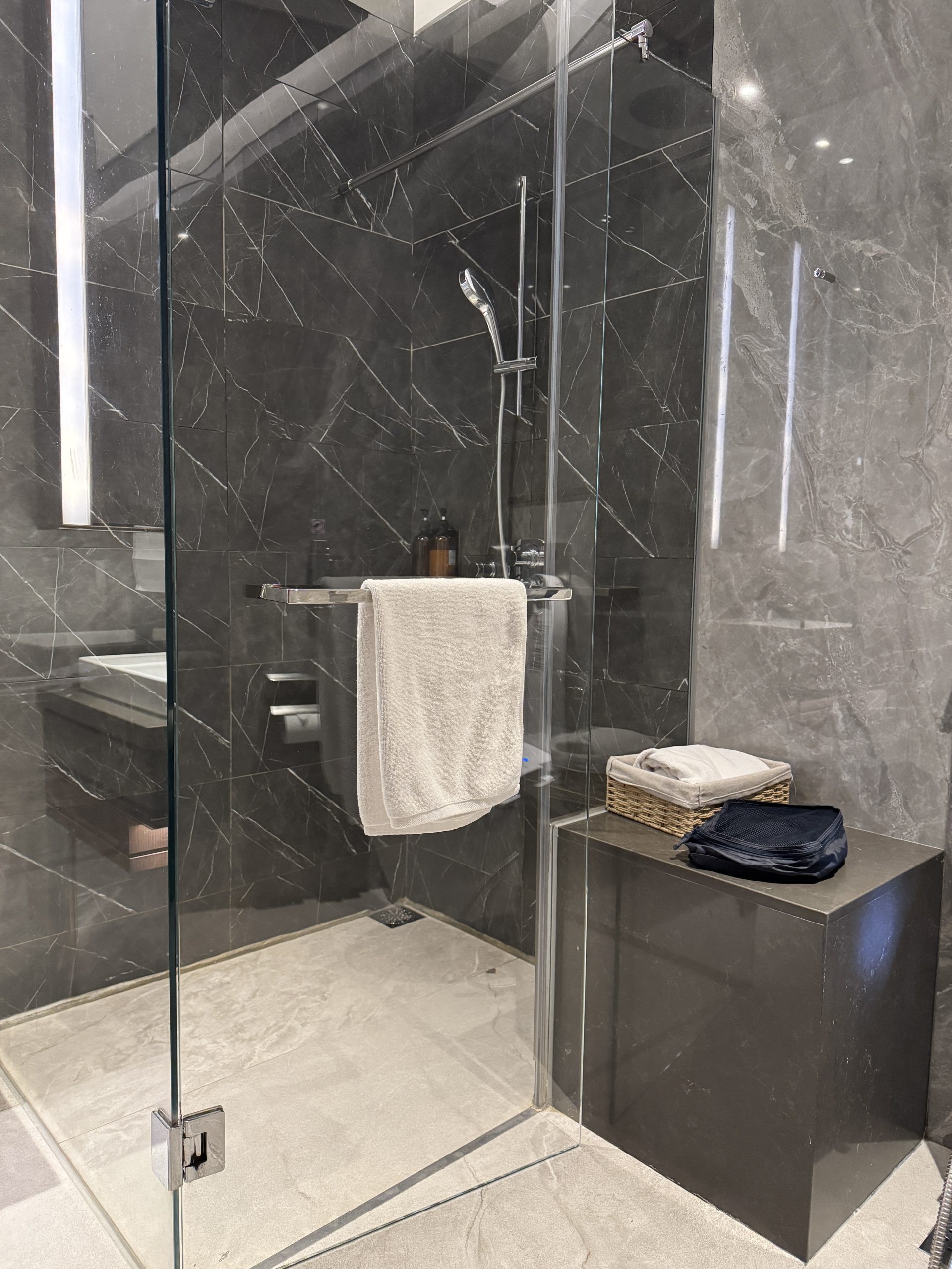 我們也提早去排淋浴間,畢竟搭長程班機之前能洗個熱水澡真的很重要。