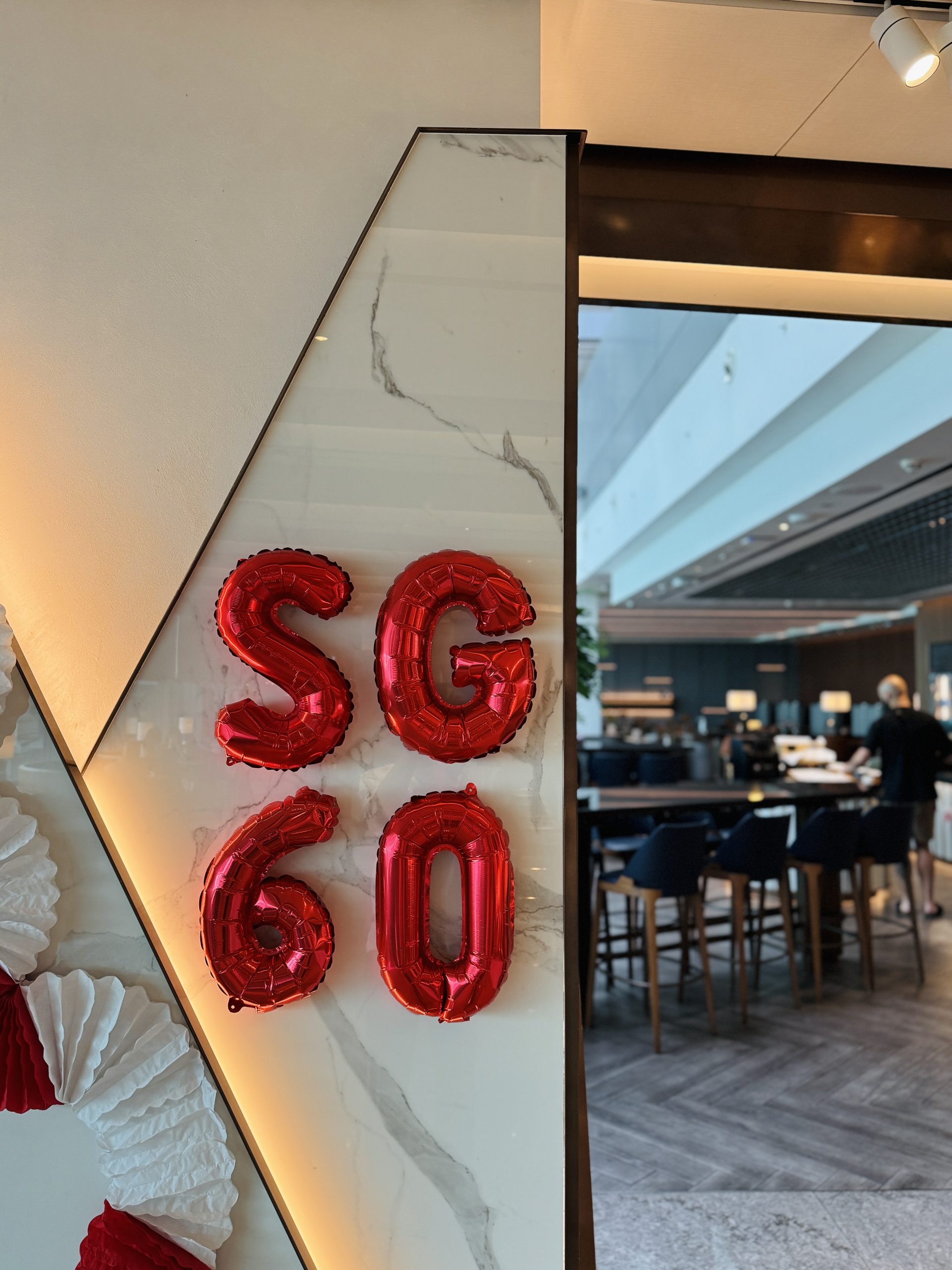 就是新加坡航空在樟宜機場 T3 的商務貴賓室,剛好遇上新加坡 60 週年國慶,