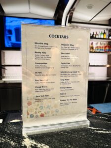 空間很大,也有全自動的馬桶,整體的乾淨程度也表現得很好。吧台提供的調酒種類也非常有誠意,就像是一般的調酒吧,由 bartender 現點現做。