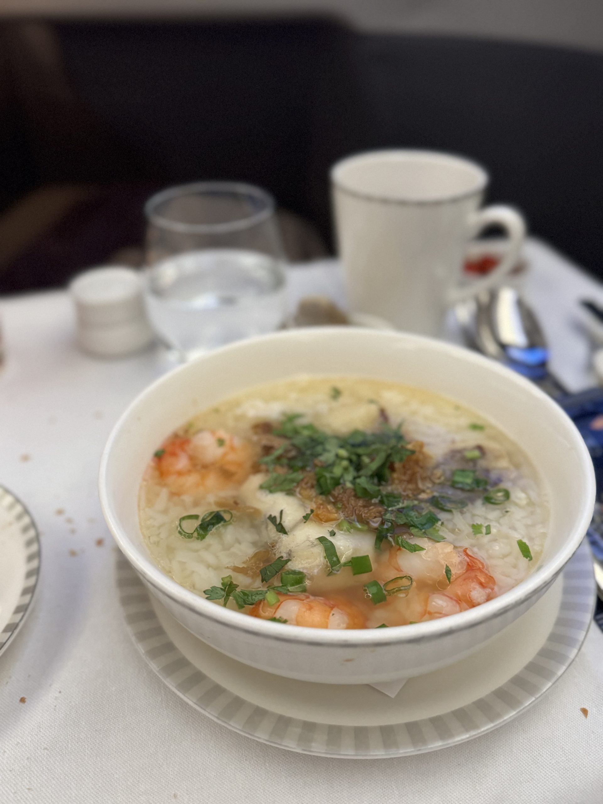 至於主餐一樣是透過「Book the Cook」事先預選的菜色。我選的是泰式海鮮粥,湯頭清爽,非常暖胃,對剛睡醒的我來說是非常舒服的選擇。