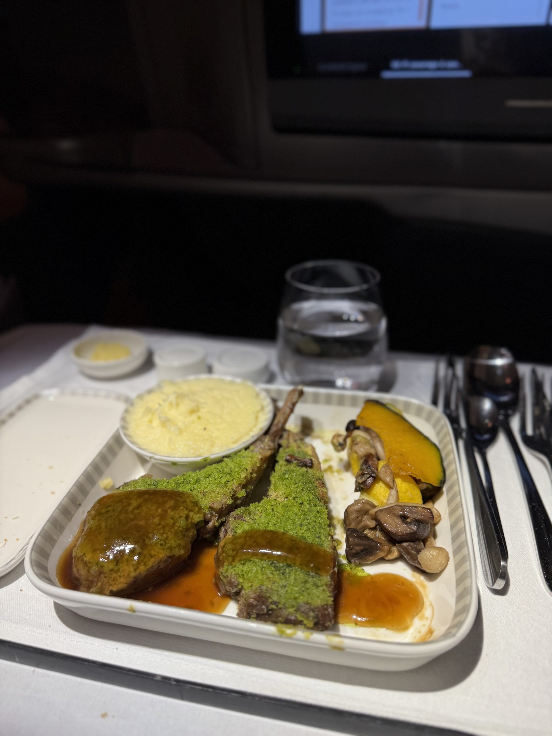 重點是,他吃完回頭一看,機艙燈都關了,大家都睡了,只剩他在吃(笑)。雖然我們因為太飽沒能全部完食, 但整體體驗還是讓人印象深刻。