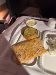 搭配清爽的醬汁,算是開啟這趟「空中晚餐」的好序曲。但不得不說,這段航程的麵包表現就沒那麼亮眼。