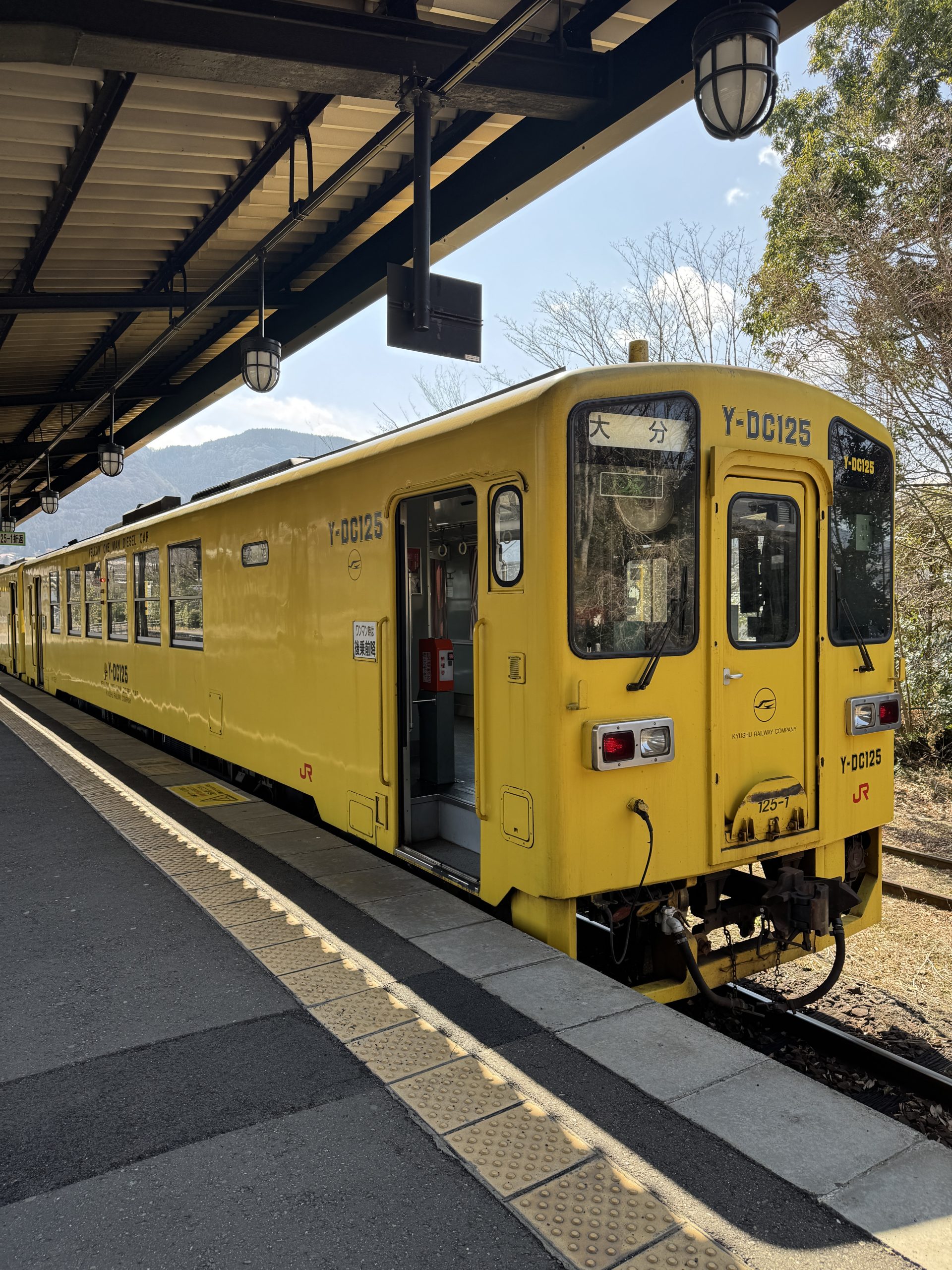 這趟列車並不是直奔終點。從別府回博多的路上,會短暫停靠兩座小站,