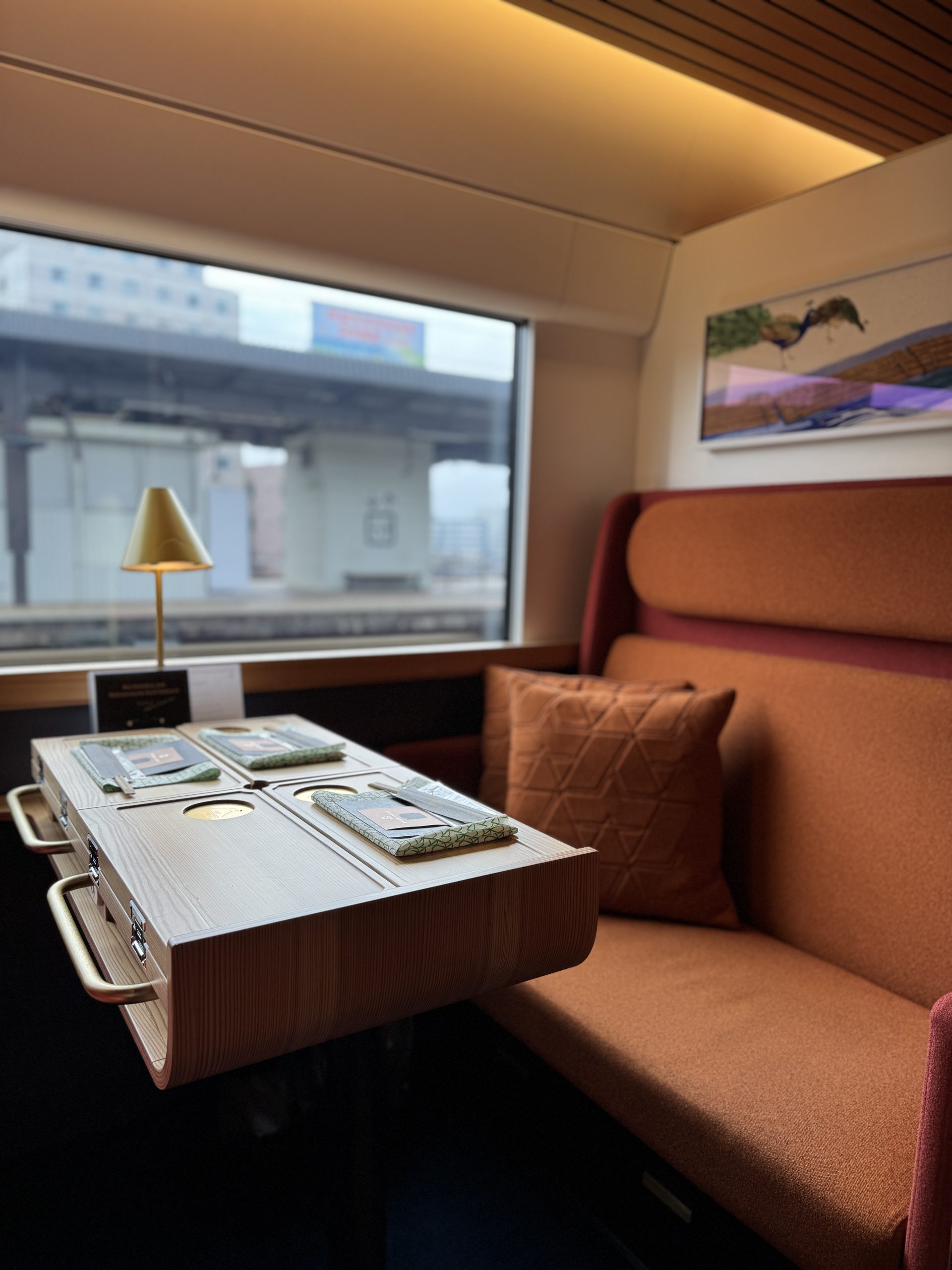 紅色車廂則是象徵別府與大分的溫泉與火山,沙發的暖橘與酒紅,讓整體氛圍更溫暖。中間那節吧台車廂,則是整列車的核心。