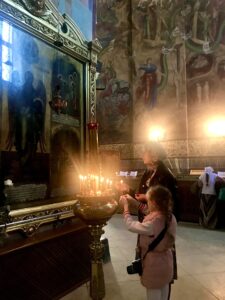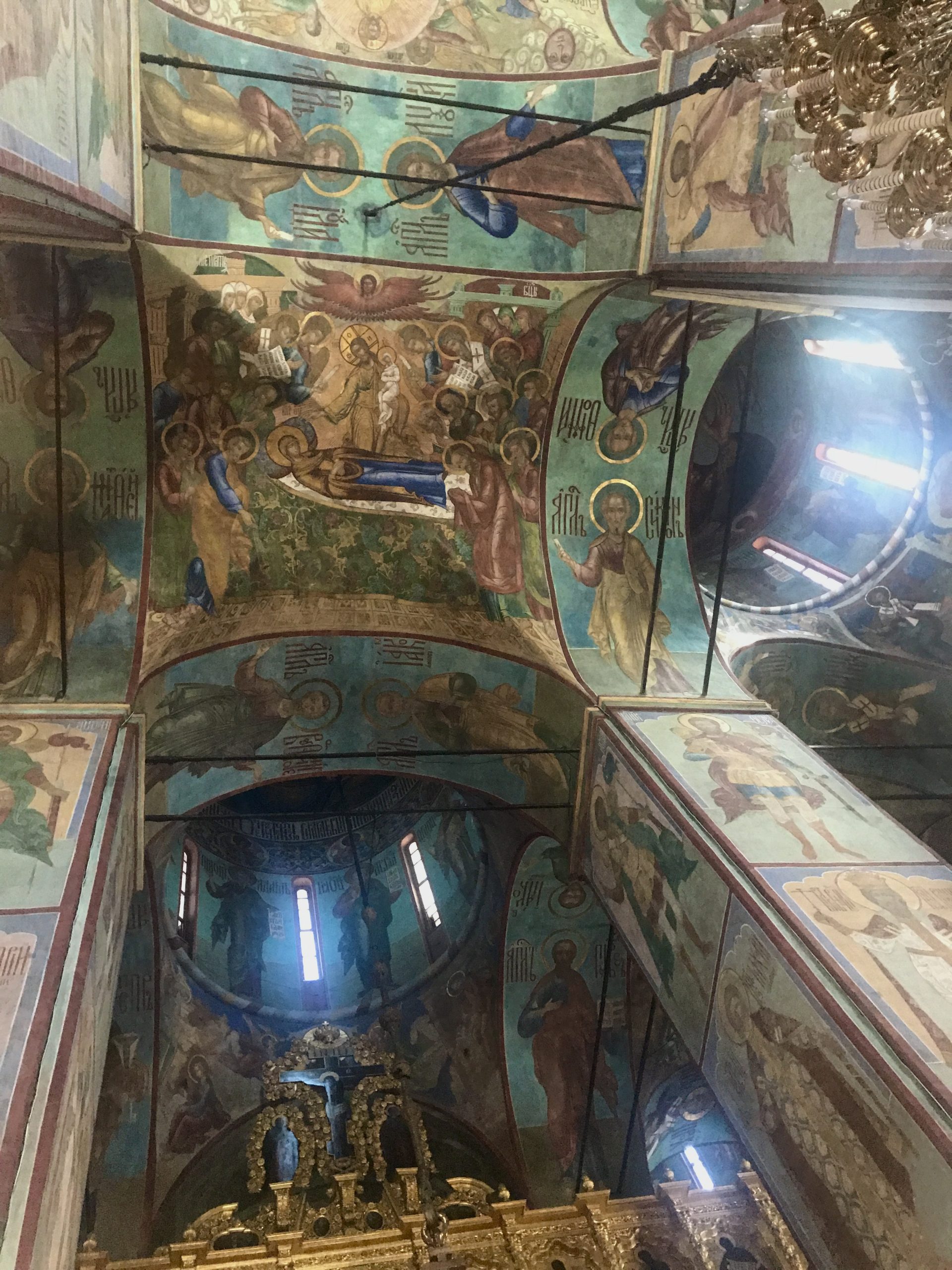 陽光從車窗灑進來,照在舊式的棕紅色座椅上,有種小時候搭復興號的錯覺。Sergiev Posad 最為人知的地標,是聖三一修道院(Holy Trinity-St. Sergius Lavra)。