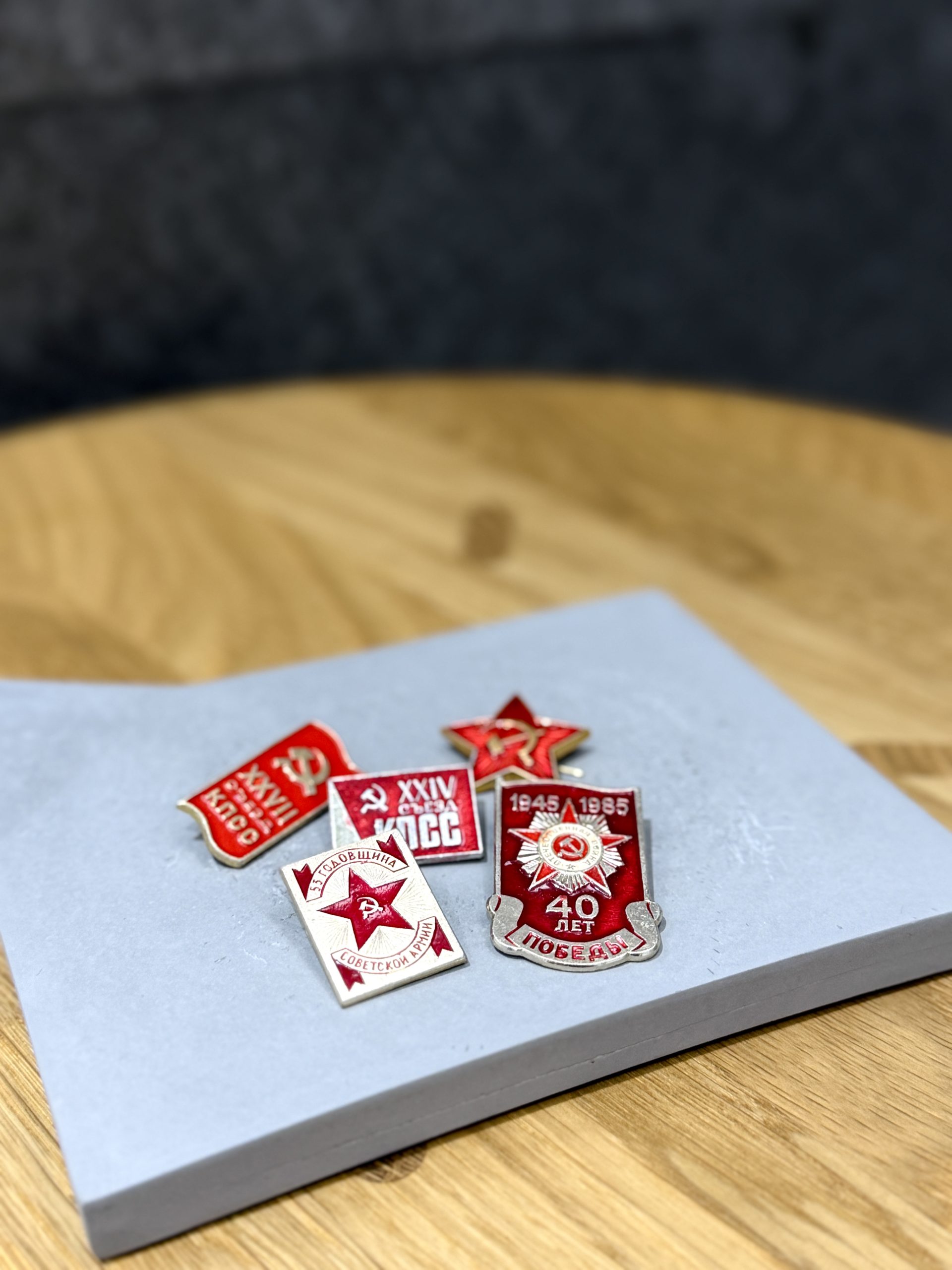 每一個都有些斑駁,有的是奧運、有的是太空,也有印著蘇聯共產黨的版本。