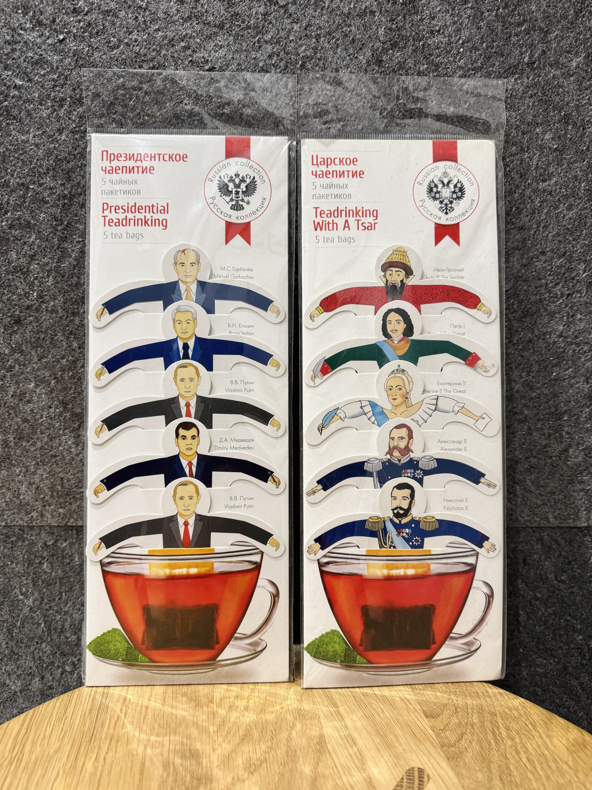 泡茶時就像這些人正掛在杯緣泡澡——歷任總統、歷代沙皇、俄羅斯娃娃,