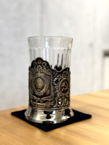 我還記得那時候站在攤位前猶豫超久,每一個都想要,最後乾脆全打包。另一個讓我很珍惜的,是那個 podstakannik——