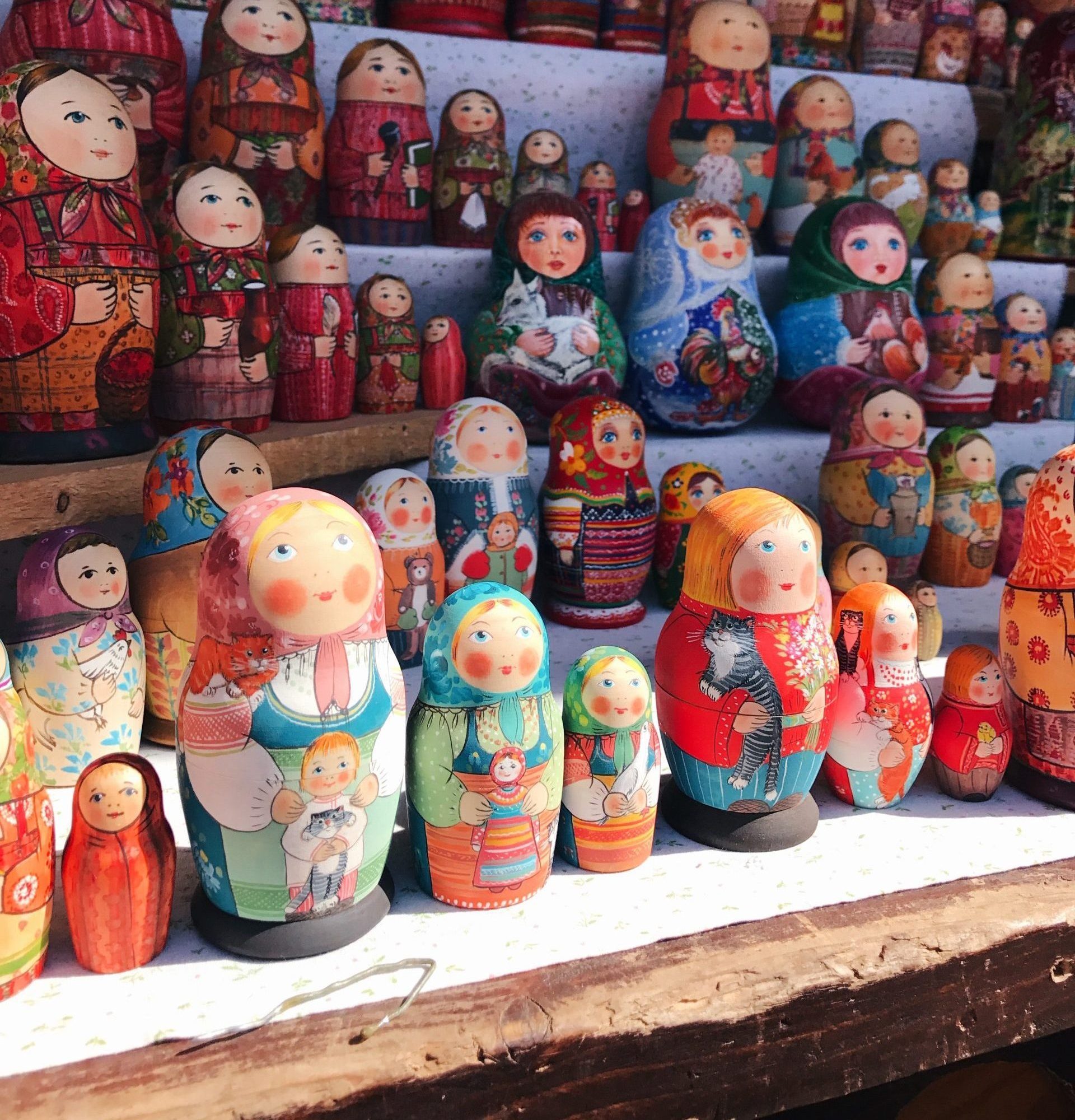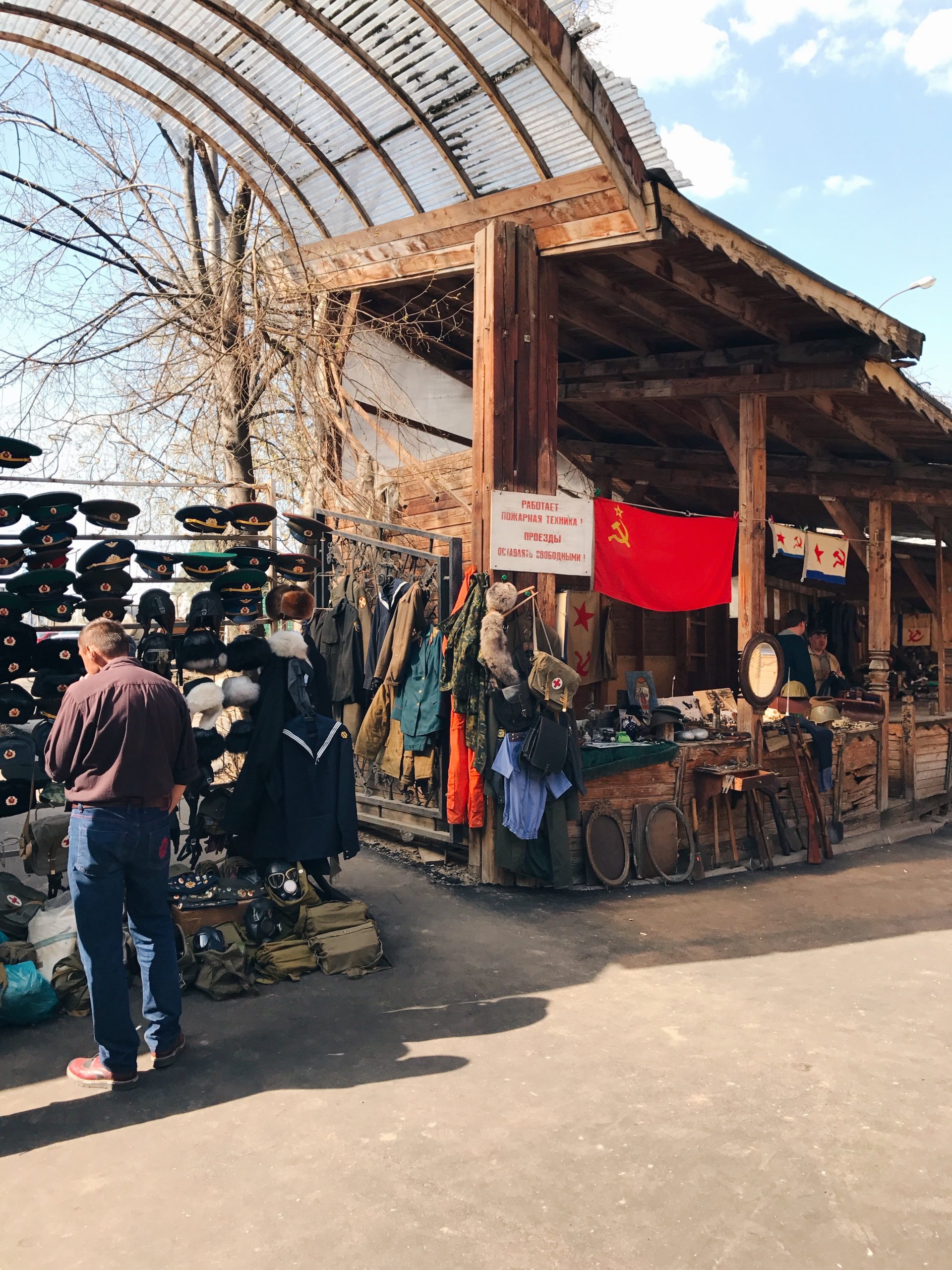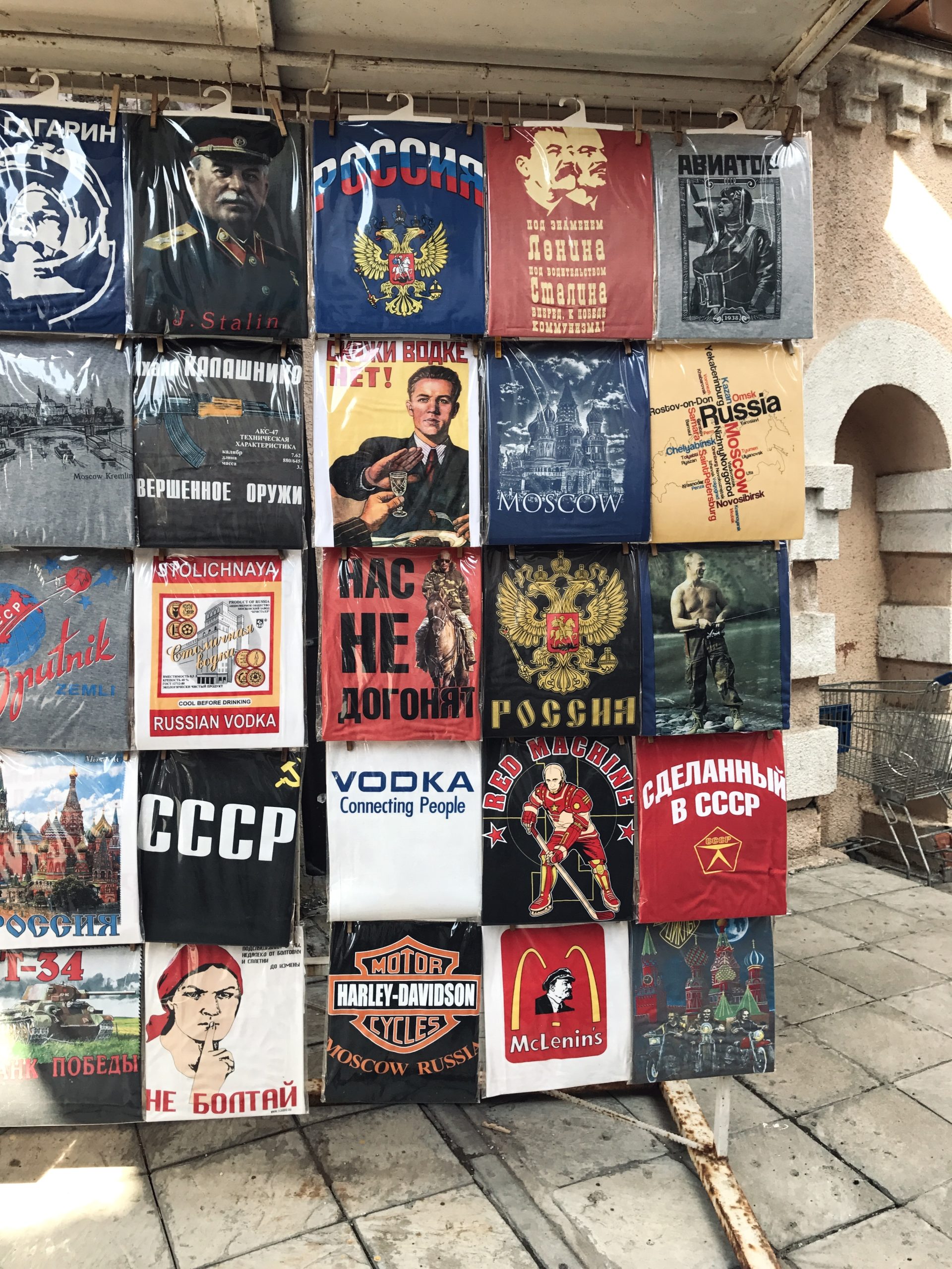 整排整排的俄羅斯娃娃、老蘇聯的軍用品、磁鐵、徽章、衣服,應有盡有,