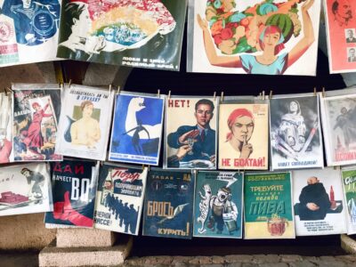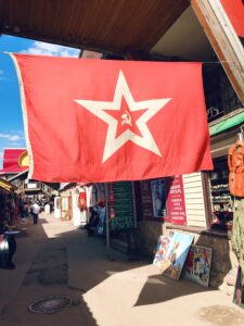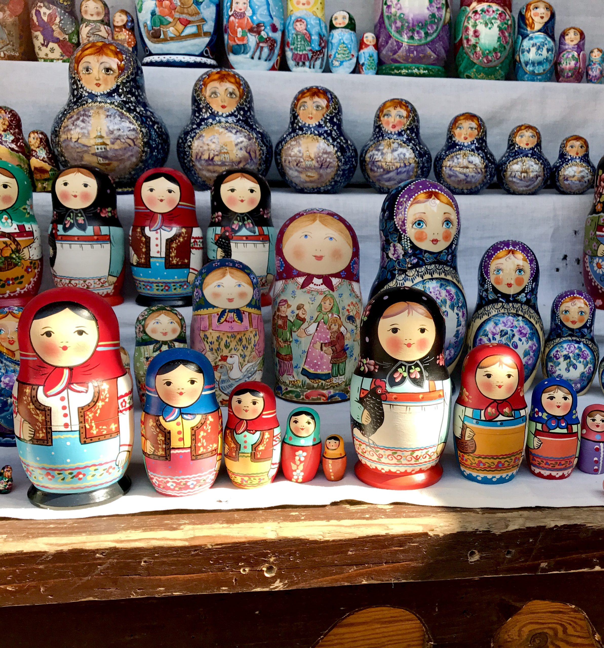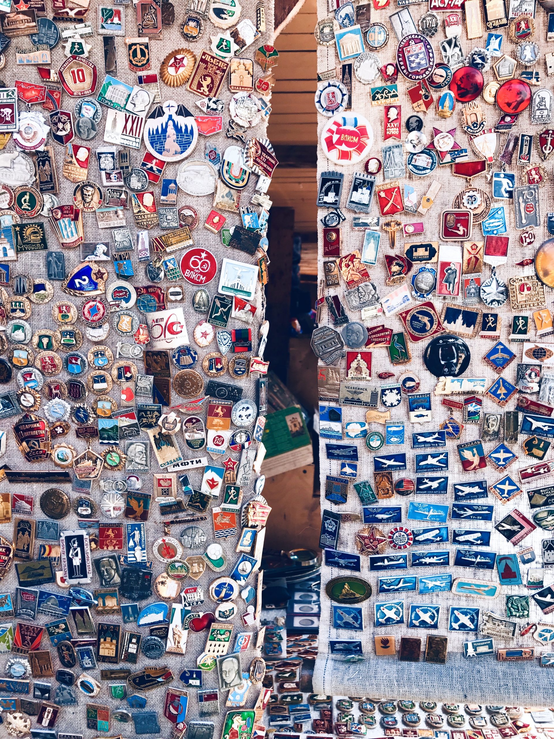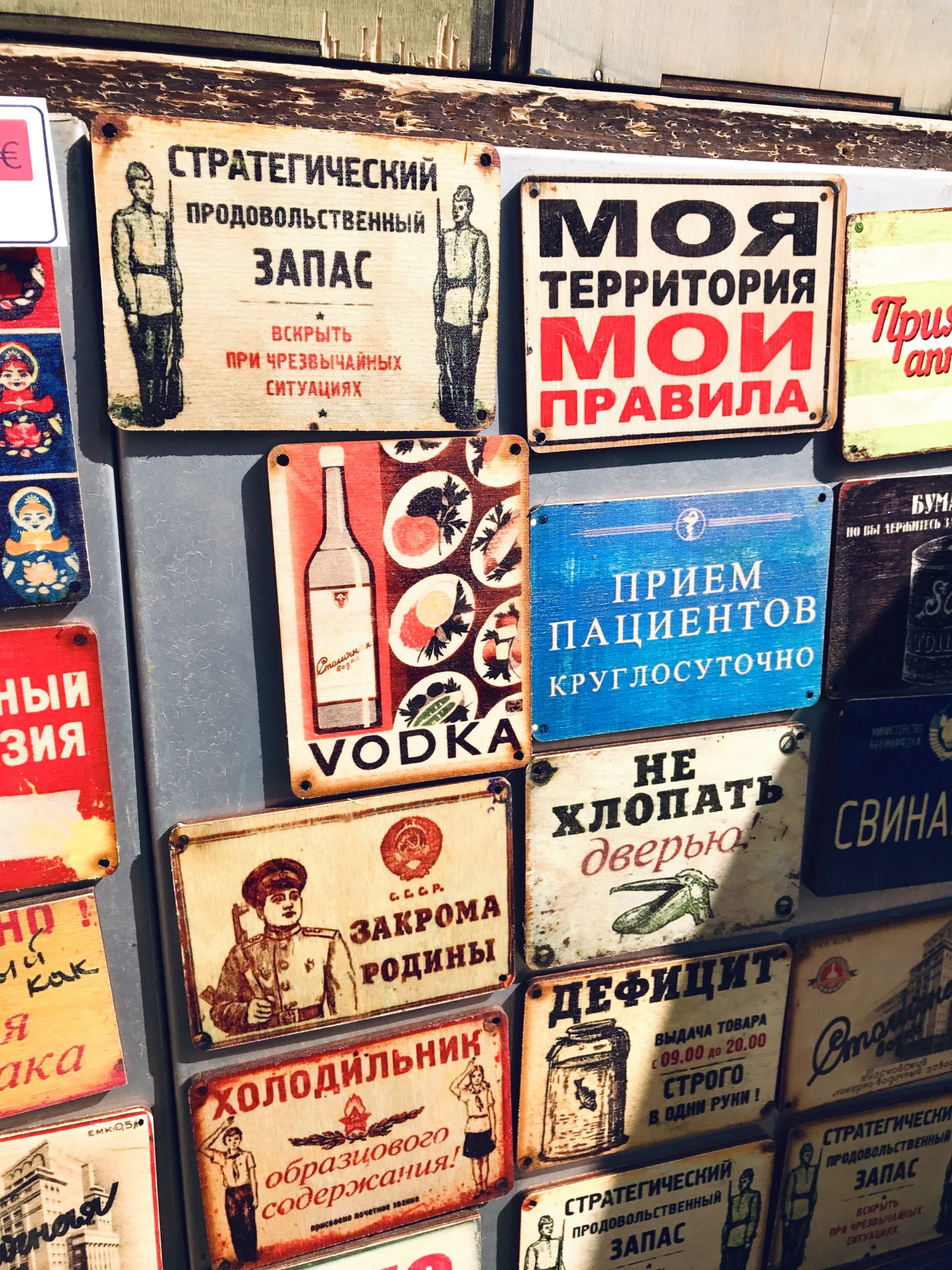 整排整排的俄羅斯娃娃、老蘇聯的軍用品、磁鐵、徽章、衣服,應有盡有,