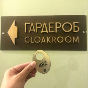 一到大廳,我跟著人群寄放外套,拿到一塊小小的金屬鑰匙牌。