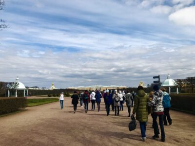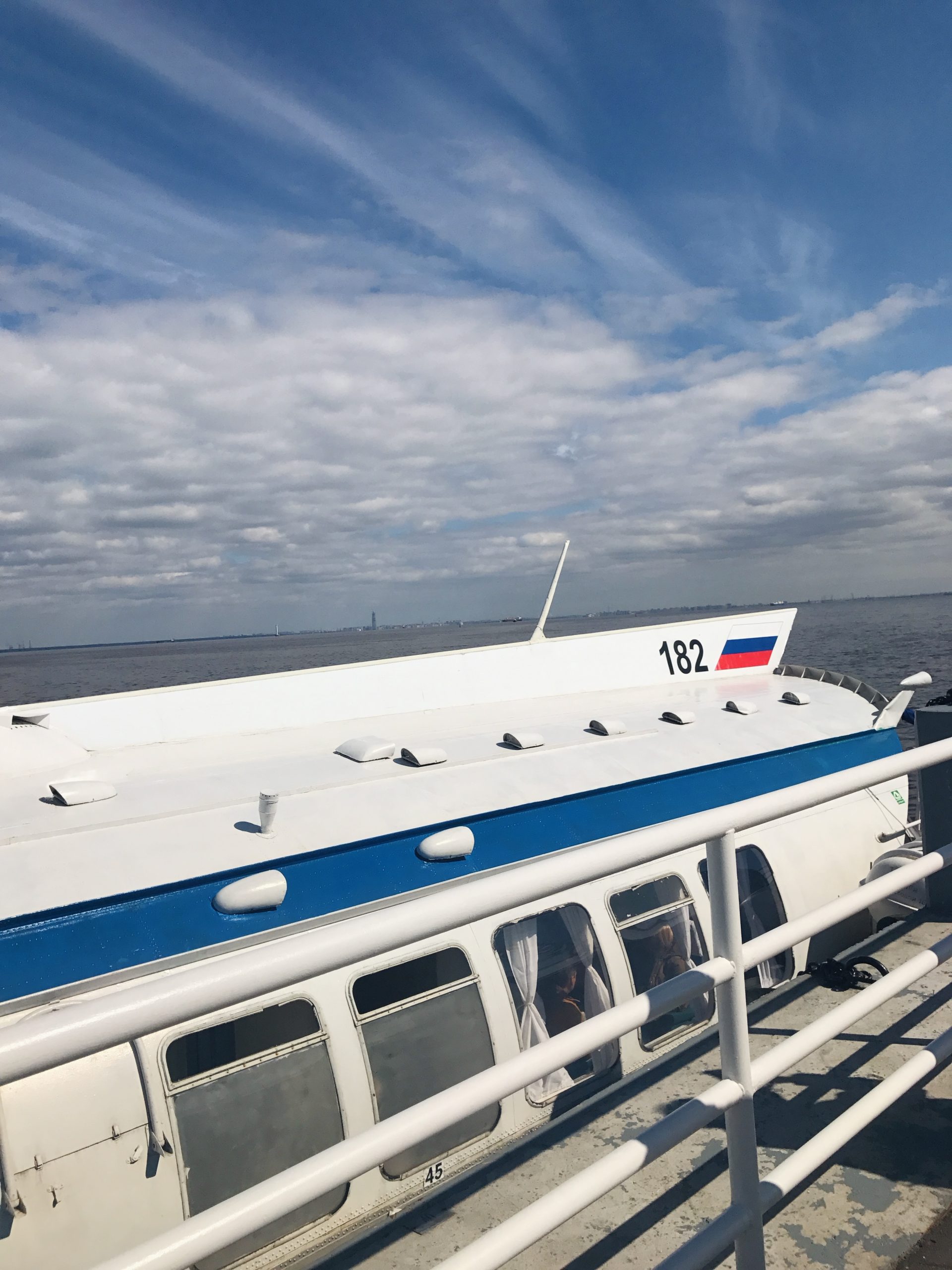 整座宮殿正對著芬蘭灣,像是對外宣稱「海權霸主」的霸氣姿態。從聖彼得堡市中心出發大約一小時,我去的那天蠻幸運的,有陽光帶著一點微風。