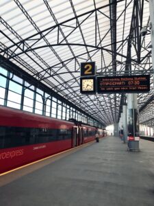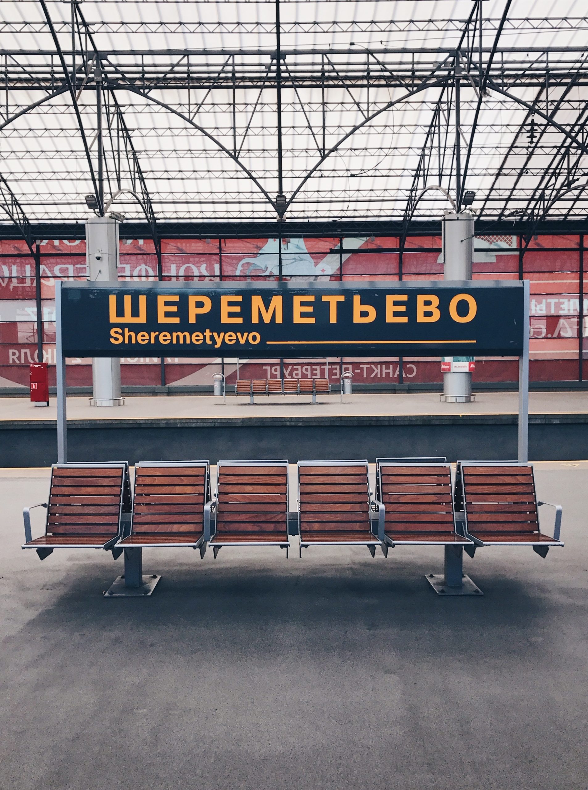 在機場快線的月台上,空間長得看不見盡頭,寬敞得有點讓人沒安全感。不時響起的俄文提示,語調短促又堅定,