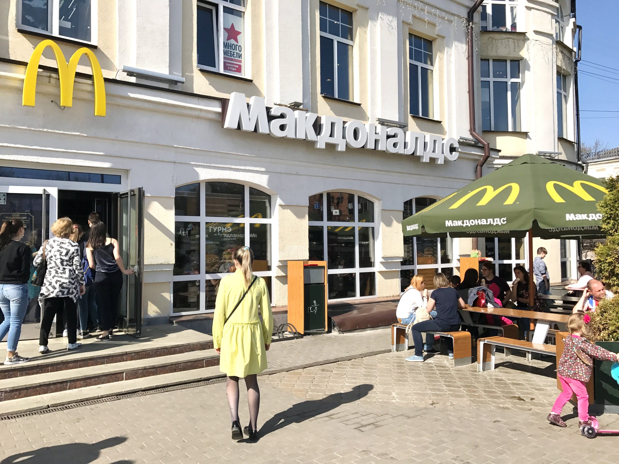 但名字完全不是我認識的字母。接著又看到一個黃色 M 招牌,看起來像麥當勞,但旁邊的字都不對。