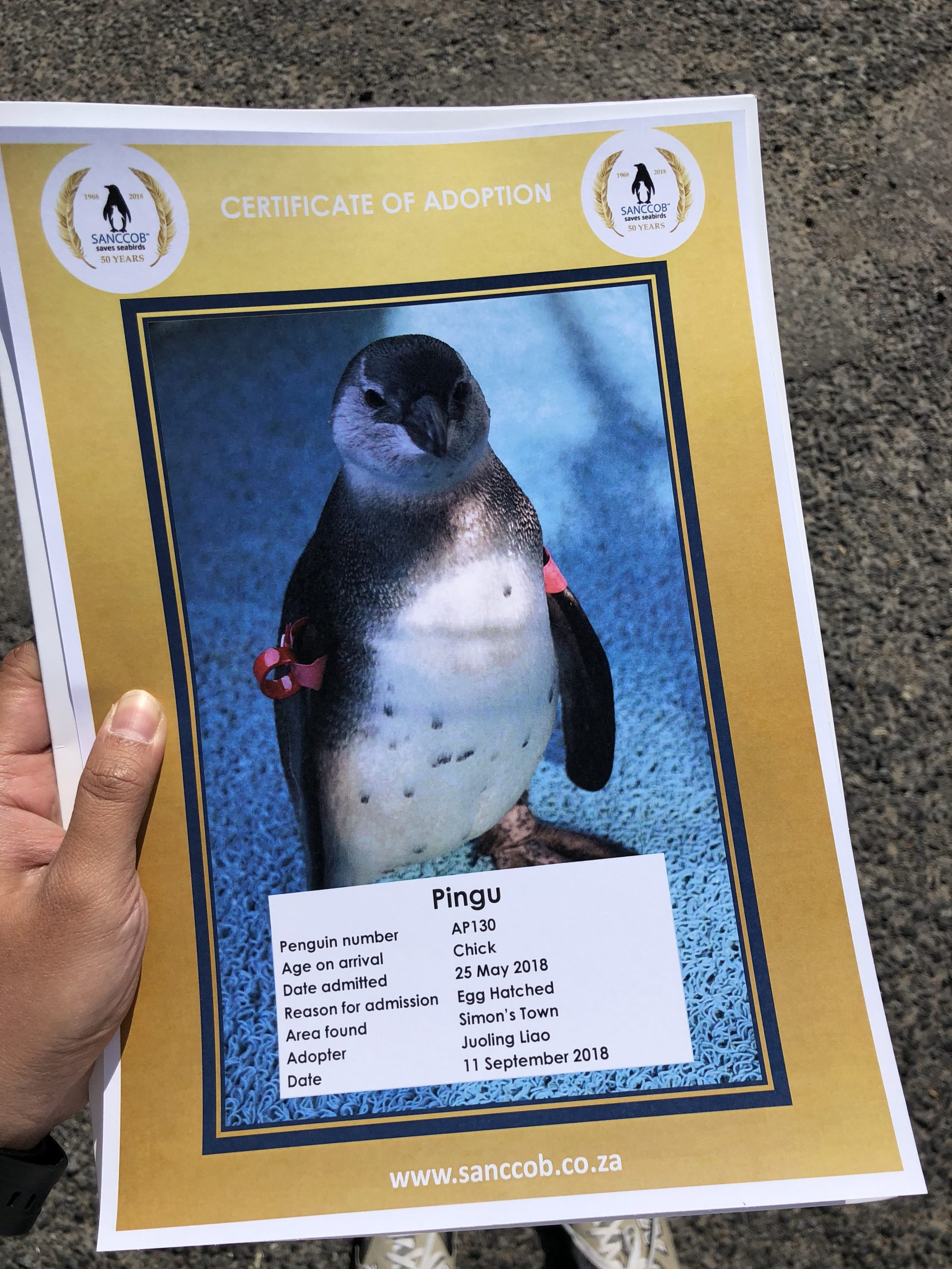 我當下立刻填表、立刻認養,幫牠取名叫 Pingu —— 因為牠真的超像。雖然不能把牠帶回家,但那一天覺得自己做了一件雖然小但很重要的事。