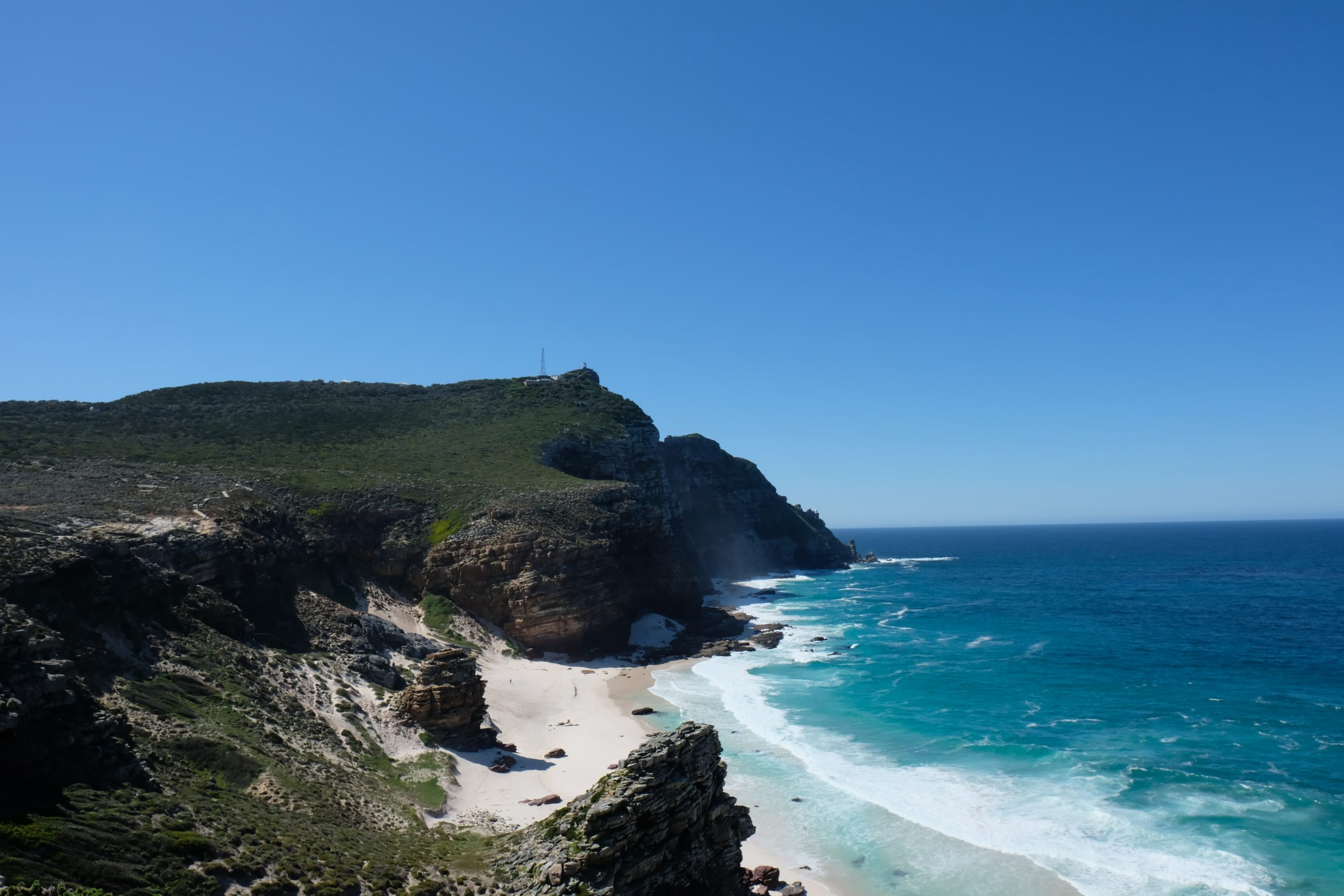 開往那個被稱作「開普半島盡頭」的地方 —— 好望角(Cape of Good Hope)。壯麗的山與藍得不真實的海,在陽光下閃閃發光。