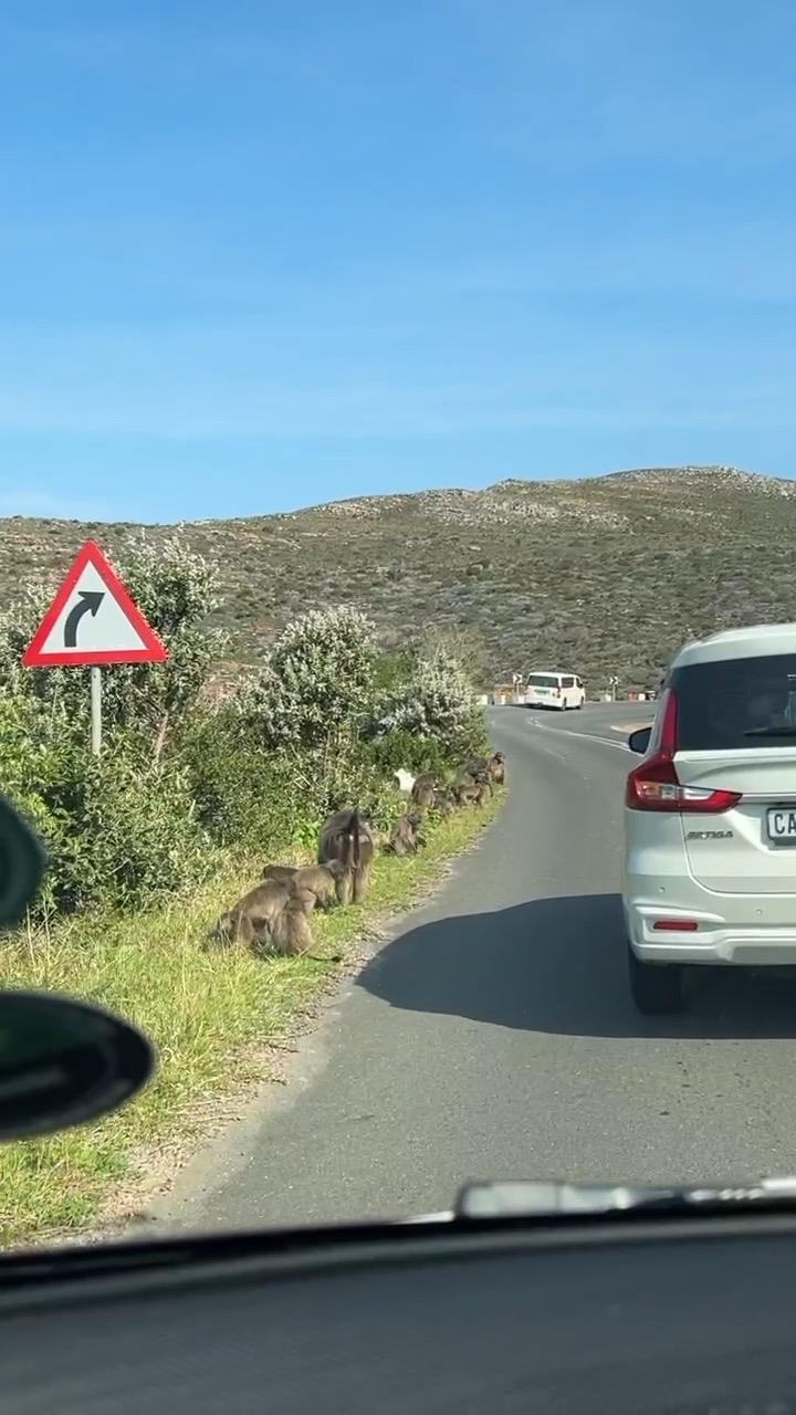 在南非,野生動物不只出現在保護區裡(笑)。第一次來時,我不只去了好望角,也登上了更高處的 Cape Point。